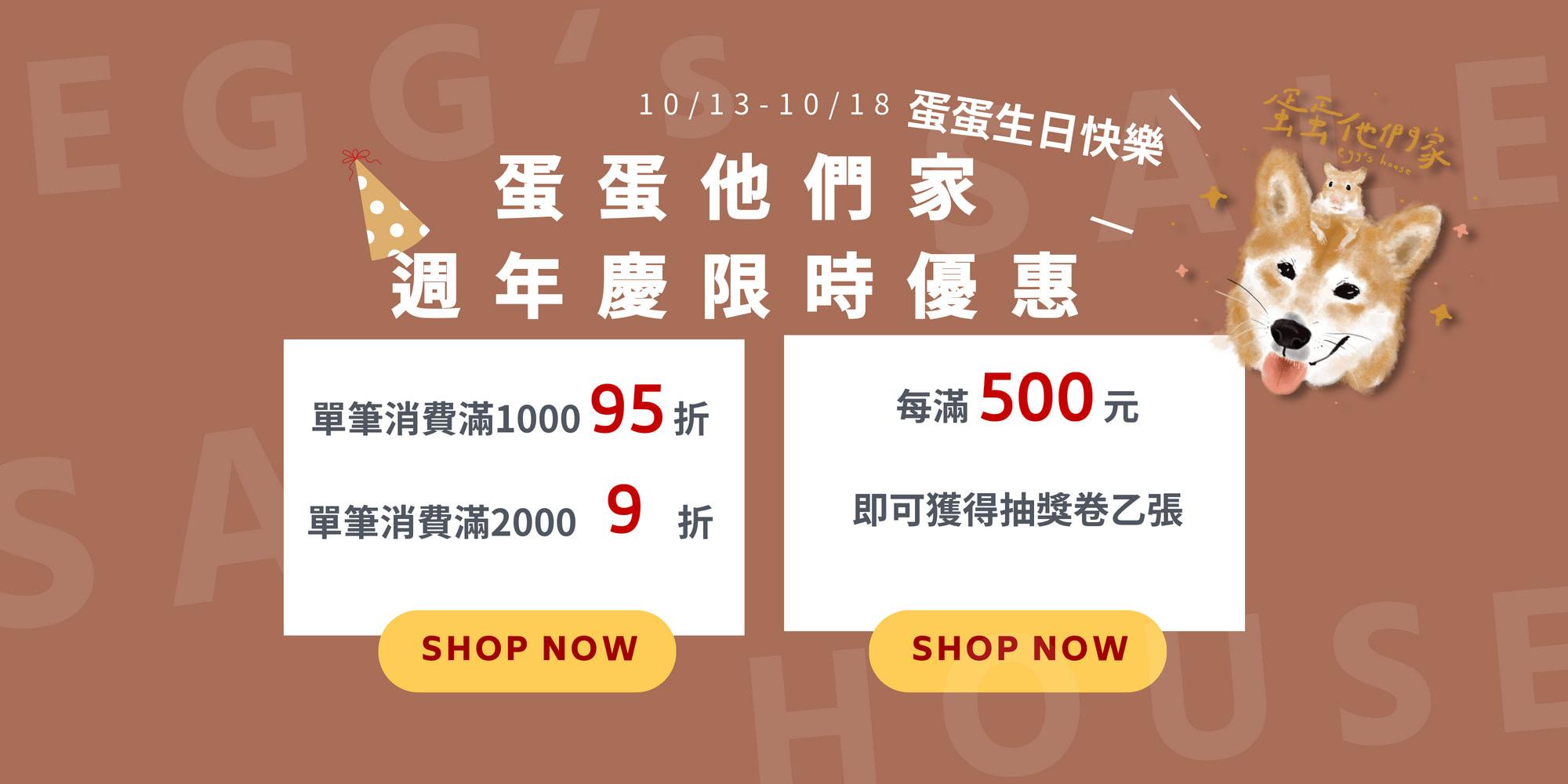 蛋蛋他們家 10/15-10/20週年慶 滿1000享95折